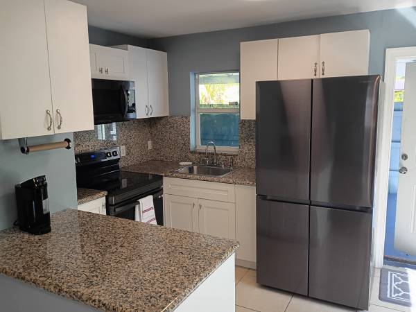 This is a fully furnished single-family house. The kitchen was remodeled and has new black stainless steel appliances, and granite counter tops.