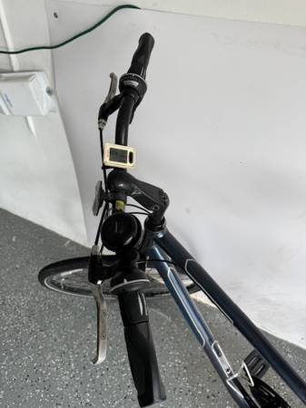 Large Giant Cypress LX men's hybrid. With new schwinn bell and cat speedometer/odometer. New sheepskin seat cover and lightly used fingerless gloves. Well maintained by Bicycle Doctor of Boca. Tires...