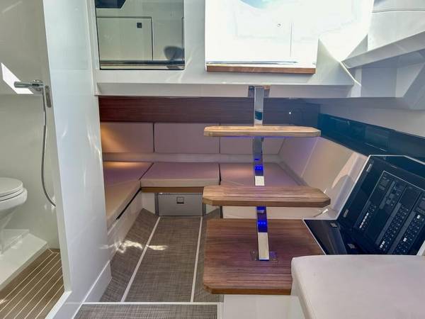 Powered by twin Mercury 400 B JPO outboard engines, each delivering an impressive 400 horsepower, the D36 OPEN promises exhilarating speed and responsiveness. This model features a well-designed accommodation layout, including a complete kitchen, a two berth cabin with AC, and an electric head, making it perfect for both day trips and extended adventures.