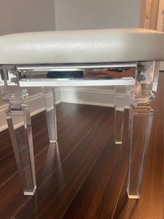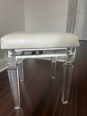 Acrylic legs, mirrored accents, and white leatherette seat pad. Must pick up.