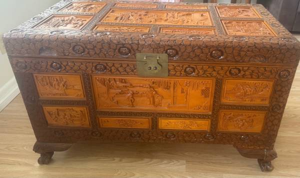 Beautiful sturdy carved chest for sale .