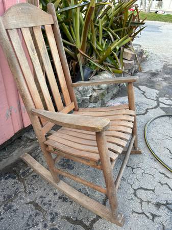 Rocking Chair is very well made. The height is 38 inches at the back, the length is 25 1/4 inches and the width is 30 1/2 inches, The seat is at a height of 17 1/2 inches. The chair has small damage on the right arm of the rocker; I have a picture of it. Call or text only please, I do not go into voice mail or e-mail, thank; you. show contact info