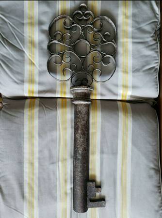 The key to creating an eye-catching focal point in any ensemble? This ornamental skeleton key, of course! Crafted from cast iron, this handmade piece boasts a solid finish and showcases an openwork design for an elegant touch that complements a variety of design aesthetics from classic to country cottage and more. Best of all, this piece is resilient enough to be used in ensembles both indoor and out!