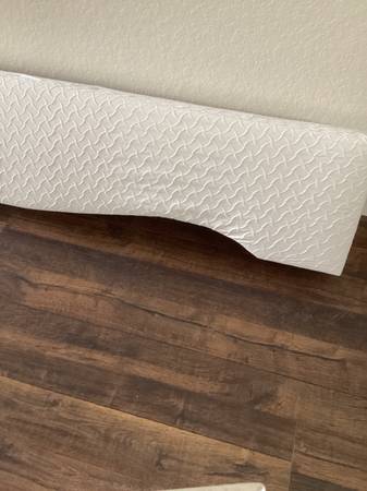 Custom made wood cornice with a simple, elegant scalloped edge. It measures 68 inches wide by 6 inches deep and 12 long at longest point in the center. Fabric has been changed when updating our rooms. White, embellished fabric can easily be removed and you can add your own fabric to suit your own style. I used white, linen fabric curtains underneath the cornice for a high end look. This cornice would be great in a child’s room, guest room, bedroom or office. If used for a child’s room the top can be used to display dolls or other bedroom decor items. Would be sweet in a nursery. Smoke and pet free home