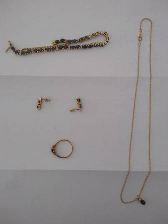 The tennis bracelet is approximately 8” long and if you add the safety chain, that’s another 2” long. It has a total of 26 sapphires and 13 rows of diamonds (3 chip diamonds in each row).