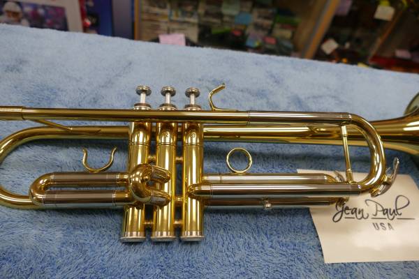 Great Condition Jean Paul Student Trumpet - Tested and Working MODEL TR-303 The trumpet comes with a case and a mouth piece. Generous Bore - Rose Brass Lead Pipe Gold Laquer Finish - Slide Grease -...