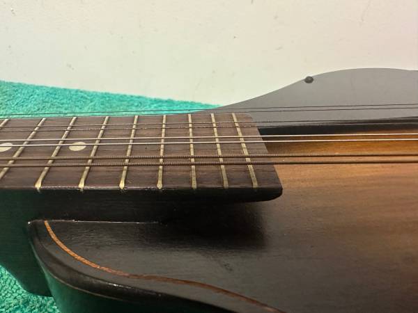 Harmony of Chicago Sunburst Solid Mahogany, Rosewood fingerboard and bridge look GREAT for age......NO Cracks condition head to toe very good.....Adjustable bridge lay flat no Buldges...Tail piece GOOD Condition....Fretts look NICE......Orig Grover open back Tuners work and look very good.....Neck and string height PERFECT!!! NO REPAIRS!!! Could use New Strings.