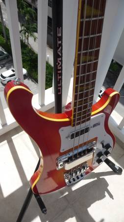 You are looking at a Rickenbacker 4003 AFG, Super Rare 2006 Highly sought after collectable Color of the Year extremely Limited Run Electric Bass Guitar. One of the rarest Rickenbacker Custom Color Finishes available on a Rickenbacker 4003 Bass Guitar. Don't confuse this finish with the typical standard Fireglo Rickenbacker Finish. This Amber Fireglo has and aged Orange fading into a Golden Yellow in the center. It is also adorned with Golden Yellow (Vintage Aged) Binding that really sets this Masterpiece apart from the rest. In my humble opinion, this is one of the most gorgeous of all Ricks. It's stunning in person.