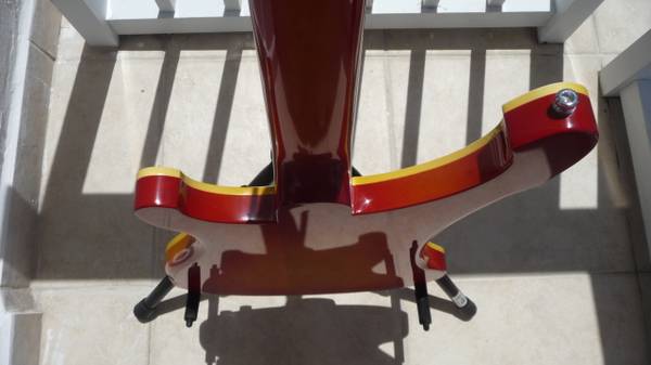 This AFG finish is very unique and in my opinion, the most outstanding and beautiful of all Rickenbacker finishes. The finish on this one is a gorgeous shade of Orange fading into a Golden Yellow hue from the outer portions to the inner areas. The edges on this bass are amazing the way the Orange morphs into that Golden Yellow tint. What really sets things off and makes this bass pop is the amazingly stunning Golden Yellow Vintage Ageing process that Rickenbacker used on the binding on this limited run of these Amber Fireglo instruments. They also used a specialized formulated proprietary vintage tint in the clear conversion mix on the fretboard. It looks incredible, to say the least. The Artisan at Rickenbacker that was responsible for the build and paint work on this instrument, was obviously, a very experienced professional luthier. Not only does the bass look other worldly, it also plays and sounds wonderful; exactly what you expect with a Rickenbacker Bass. I'm sure you know the players that made these basses famous throughout the years. Believe me when I tell you, all those famous tones are on tap with this Bass.
