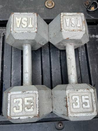 PAIR OF RUBBER HEX 70 LB. DUMBBELLS “. •. •. Also Have : 20s 25s 30s 35s 40s 45s 50s. 55s. 65s 75s 80s 85s 90s 95s 100s CALL OR TEXT ANYTIME