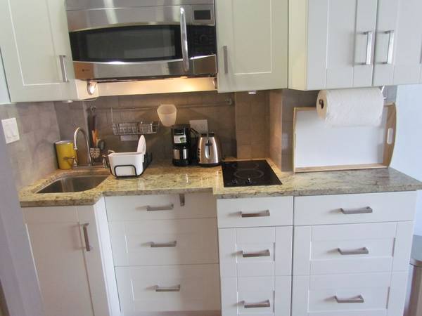 Linens, towels, pillows, iron, ironing board, and cleaning essentials included.