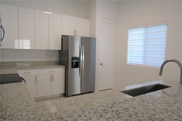 Beautiful Single family home built in 2023, 2 story 4-bedroom, 3-bathroom. Main bedroom with doble walking closet and the other 3 also offer nice and spacious walking closets. This model has a bedroom and full bathroom on first-floor level. Features: metal roof, 20 x 20 tiles throughout the general areas, granite countertops, stainless steel appliances, high-efficiency tankless water heaters, Zebra blinds, impact windows and doors, completed fenced, and beautiful landscaping. Additionally, spacious Doble car garage with a circular drive way and space for plenty cars. Space for boat, RV, truck, and more. Great location, close to Publix, restaurant, US1, Turnpike. A+ schools. No HOA. #11998