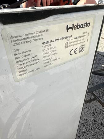 Selling a Webasto BlueCool V50M-R 230V REV-R410A marine chiller unit, originally installed new in 2021 on a 2021 Aquila 44. This unit was professionally removed in 2025 as part of an upgrade to the larger V77T model to better support extended summer cruising loads.