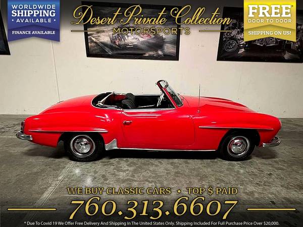 Presented in a striking red exterior over a black leather interior, this 190 SL exudes timeless elegance and classic Mercedes-Benz styling. Powered by its original 1.9L inline-4 engine paired to a 4-speed manual transmission, the car delivers smooth touring performance and a refined driving experience, true to its heritage as the elegant sibling of the iconic 300 SL.