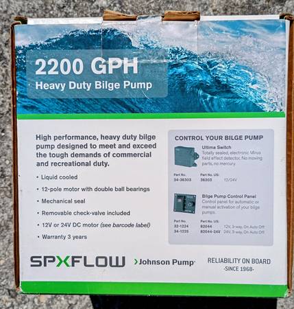 Johnson Pump GPH Heavy Duty Bilge Pump in the Box for 100 dollars please call me at