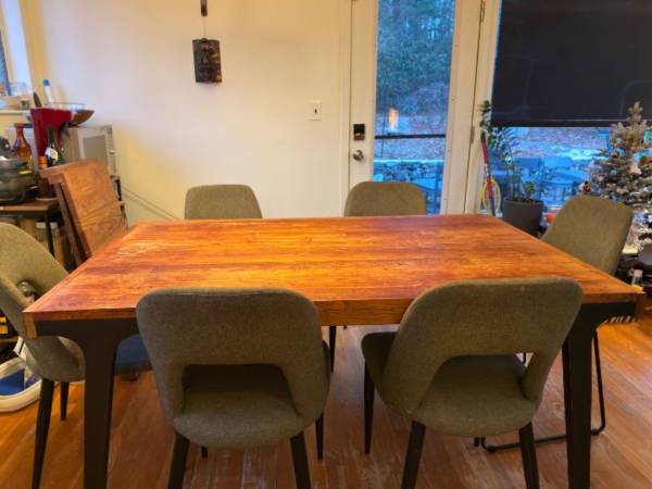 This is a solid table that needs refinishing. It easily fits 6 for most uses and then can expand out to 10. This retails for 2500$