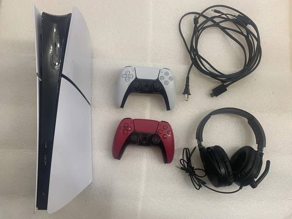 White controller has cosmetic wear (pictured 3-4), but everything works perfectly! Included in this bundle: • PlayStation 5 Digital Edition Console • 2 Controllers (one white with wear, one in good...