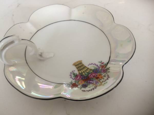 Vintage 5.5" flower shaped dish Pearlized trim glazed with bouquets of flowers design Marked Z.S.& CO Bavaria No chips or cracks