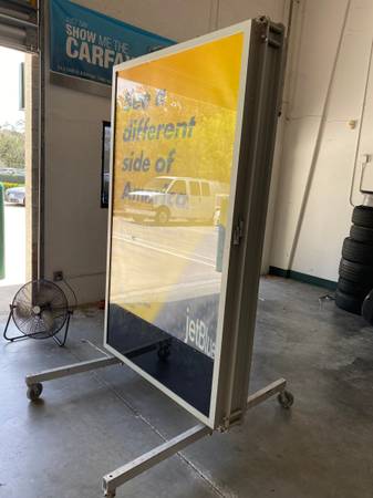 This is a high quality, commercial grade, double-sided portable advertising sign. It is new, never used, kept inside storage room. It has lights inside and they all work.
