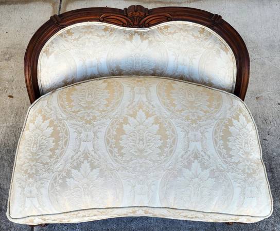 Very clean and in good, structurally sound, and sturdy condition with no smells or other notable damage EXCEPT there is a small stain on the back piping of the foot rest as shown in the last photo. The photos and video are an important part of the item description and condition so please use the zoom feature to view them closely.