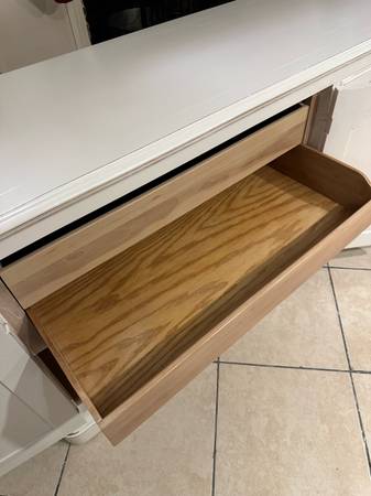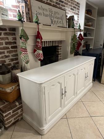 Refinished with Snow White and then lightly distressed on all edges and Sealed with a Satin Polyurethane