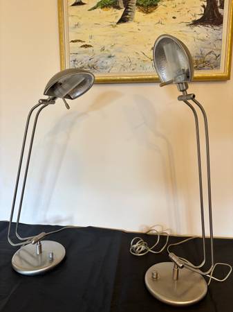 Silver Nightstand Lamps 100w Holtkotter Leuchten 360 Flexible! New Bulb! Fully Functional! 9” x 8” x 23” $25 each or both for $40 Meet in Boca, preferably at Costco. Please text me as I get a lot of...