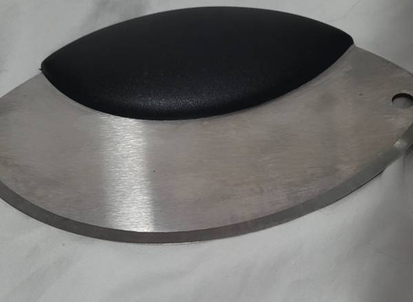 Mincing knife and cutting board set from one of the most respected knife brands in the world, Wusthof. the curved blade and ergonomic handle allow for a comfortable rocking motion to mince herbs, vegetables and more with ease. The specially designed cutting board keeps everything in the center allowing for faster work and less clean up. the 20 cm blade is made of top quality German steel. Both items are in very good condition and have hardly been used there are a few spots on the blade and the board has some minor wear in the center. (see pics)