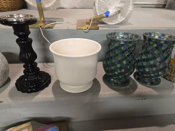 Bathroom accessories $5, vases$5, ETHAN ALLEN end table W/ STORAGE $45, and more. Cocktail glasses $1 OR OFFER, crystal champagne flutes 15 for $50, crystal brandy snifters 10 for $30, and more.