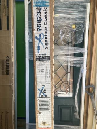 BRAND NEW 32x80” NON INPACK FANCY DOOR AND STORM DOOR ALSO NON INPACK BALDWIN BRASS DOOR KNOB INCLUDED AS WELL AS STORM DOOR HARDWARE DOOR IS A SLAB DOOR NEVER CUT OR DRILLED ON AND FRAME IS A RIGHT HAND IN SWING / STORM DOOR CAN BE EATHER RIGHT OR LEFT HAND AND IS WHITE ALL CLEAR GLASS A DEAL @400$ FIRM!!!