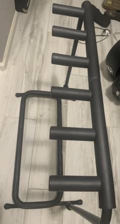 This Fender Folding Five Guitar Stand is completely padded. Will accommodate guitars, basses (shown) and acoustic instruments. No scratches or tears to the padding. New condition. $50.00